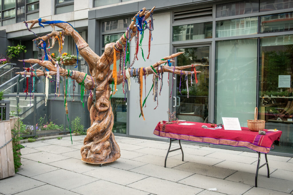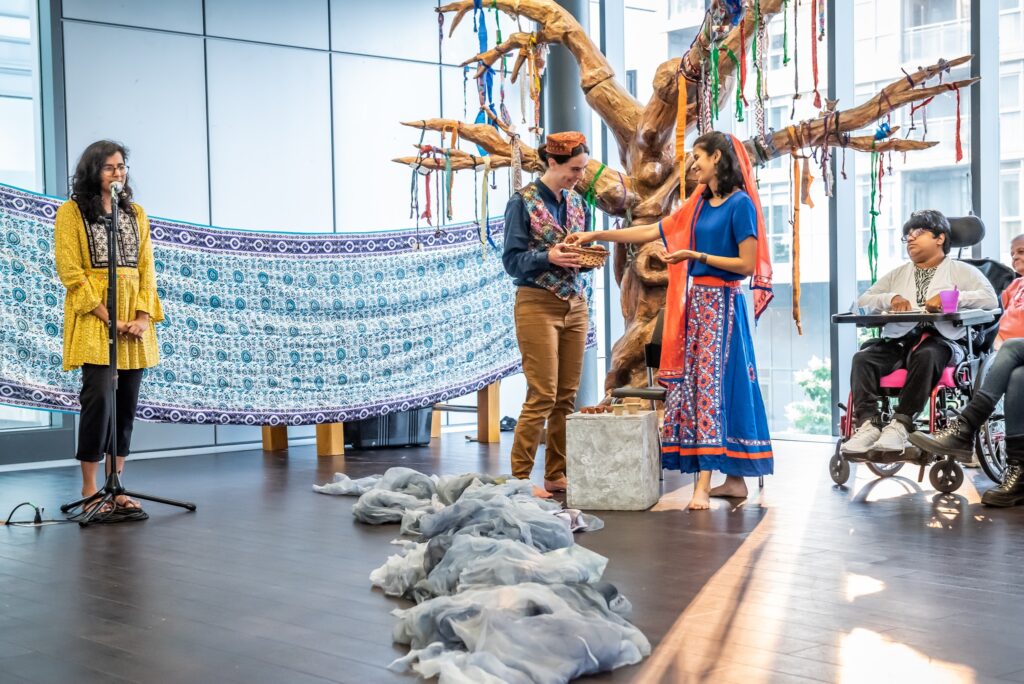 The residency shared folktales from Sindh, Pakistan, and invited community members to share their cultural, ancestral or contemporary folktales through arts and storytelling workshops, art drop-ins, and an exhibition. A central part of the residency was the creation of a 9 ft. by 9 ft. paper-maché Mannat tree, in collaboration with community members, and having hundreds of participants tie their mannat to the tree.