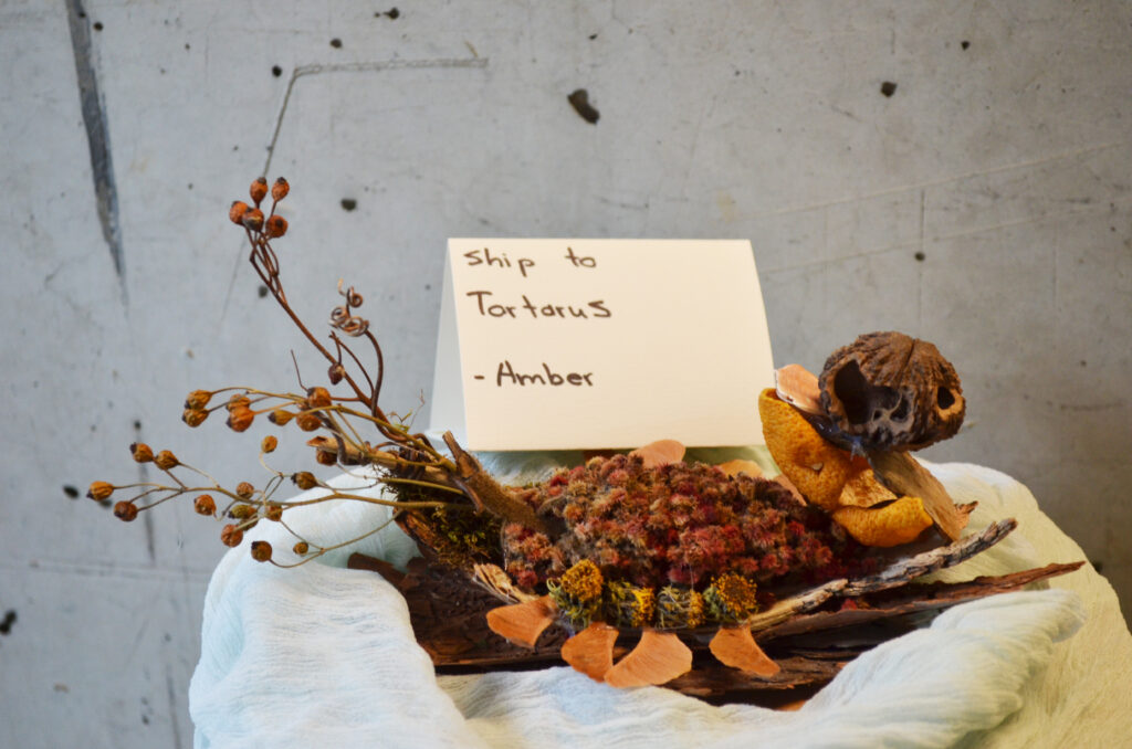 Three workshops took place, where community members explored the themes of supernatural creatures in folklore using gathered materials and creating scenes from folktales using reclaimed fabric and wedding invitations. Each material was lovingly transformed into a story, scene, or a question for us and future generations.