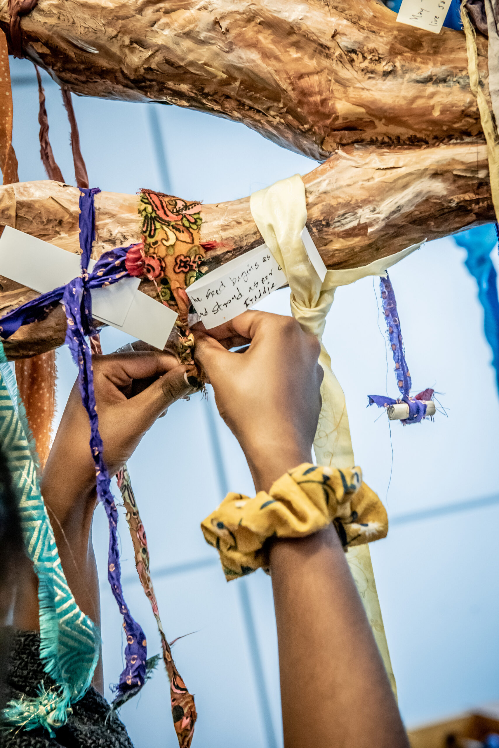 The residency shared folktales from Sindh, Pakistan, and invited community members to share their cultural, ancestral or contemporary folktales through arts and storytelling workshops, art drop-ins, and an exhibition. A central part of the residency was the creation of a 9 ft. by 9 ft. paper-maché Mannat tree, in collaboration with community members, and having hundreds of participants tie their mannat to the tree.