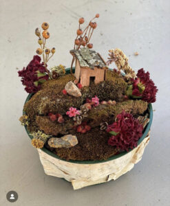 We all have a place of comfort, whether real or imagined. In this workshop, we will creatively reflect upon this theme through writing and drawing. We will transform ideas into a miniature world created using foraged, found, and up-cycled materials. Through sensory play and intuitive making, we will create sculptural pieces using moss, dried flowers, seeds, stones, shells and driftwood.